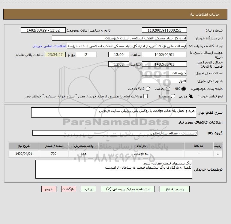 شرح کلی نیاز: خرید و حمل پله های فولادی با روکش پلی پروپیلن سایت فردوس