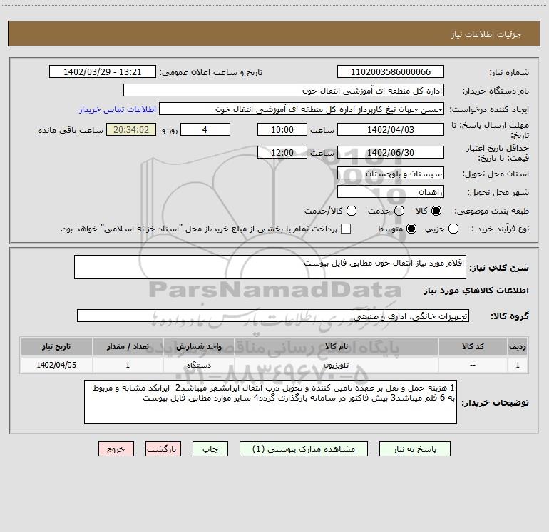 نام دستگاه خریدار:اداره کل منطقه ای آموزشی انتقال خون
