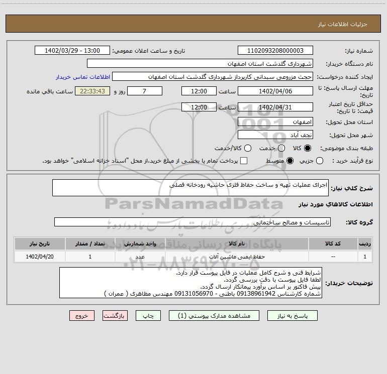 شرح کلی نیاز: اجرای عملیات تهیه و ساخت حفاظ فلزی حاشیه رودخانه فصلی