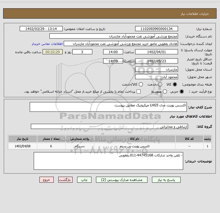نام دستگاه خریدار:مجتمع ورزشی آموزشی نفت محمودآباد مازندران