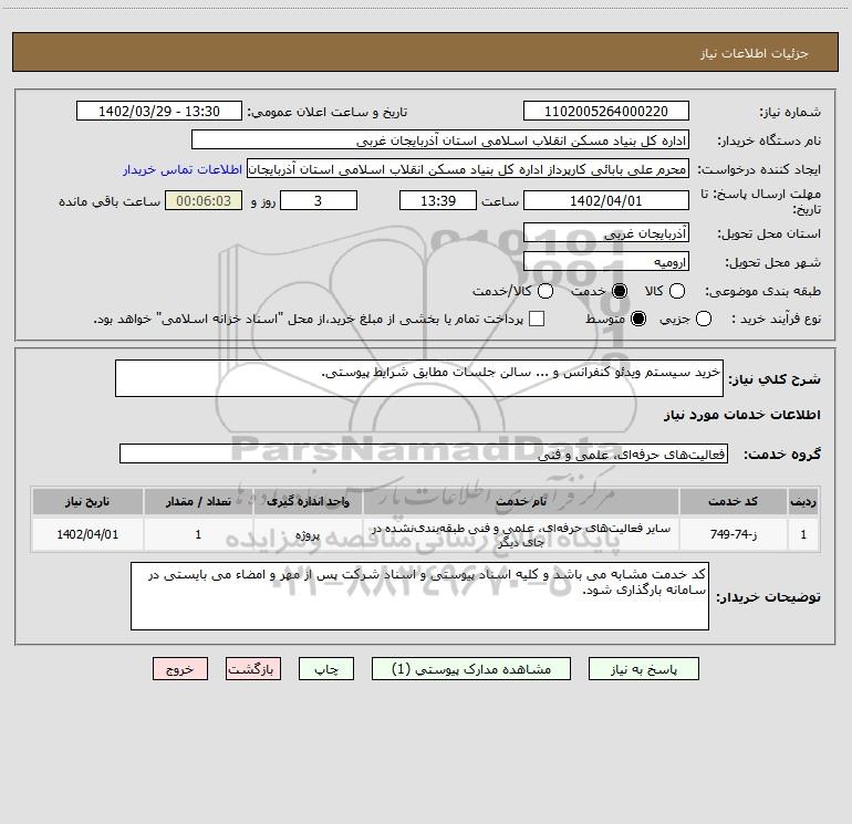 نام دستگاه خریدار:اداره کل بنیاد مسکن انقلاب اسلامی استان آذربایجان غربی