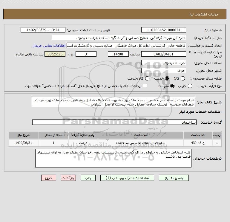 نام دستگاه خریدار:اداره کل میراث فرهنگی صنایع دستی و گردشگری استان خراسان رضوی