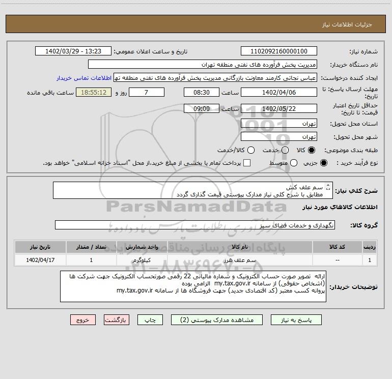 نام دستگاه خریدار:مدیریت پخش فرآورده های نفتی منطقه تهران