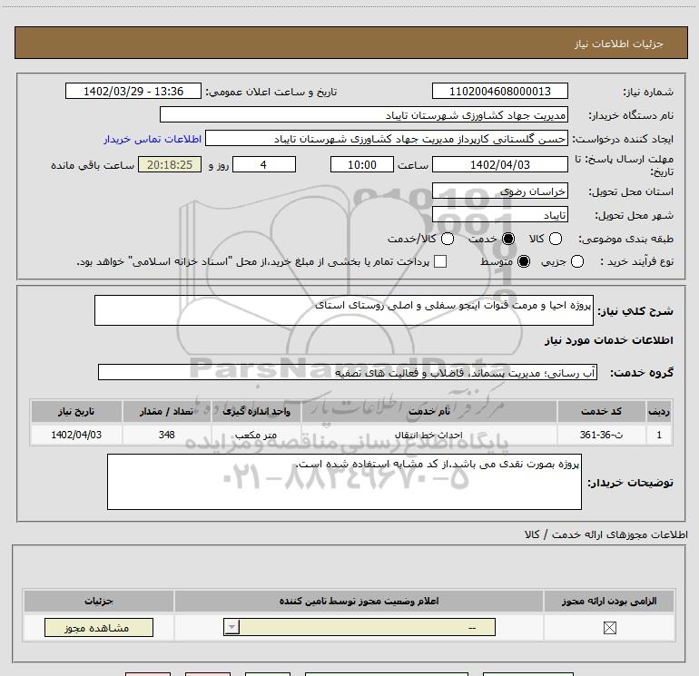 نام دستگاه خریدار:مدیریت جهاد کشاورزی شهرستان تایباد
