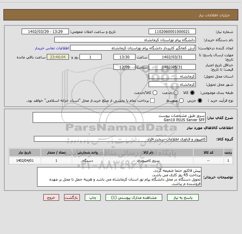 شرح کلی نیاز: سرور طبق مشخصات پیوست
