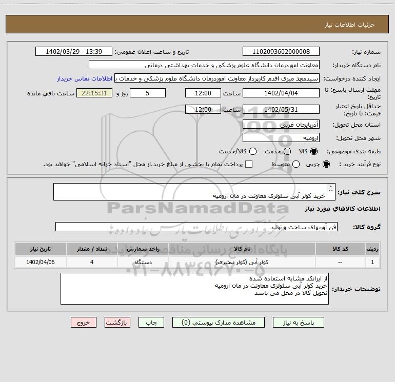 نام دستگاه خریدار:معاونت اموردرمان دانشگاه علوم پزشکی و خدمات بهداشتی درمانی