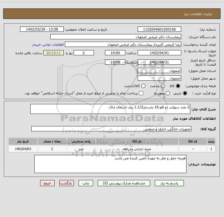 نام دستگاه خریدار:بیمارستان دکتر غرضی اصفهان