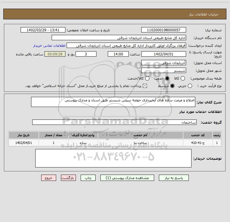 شرح کلی نیاز: اصلاح و مرمت سازه های آبخیزداری حوضه سیس شبستر طبق اسناد و مدارک پیوستی