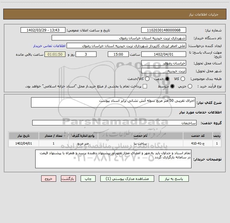 شرح کلی نیاز: اجرای تقریبی 50 متر مربع سوله آتش نشانی برابر اسناد پیوست