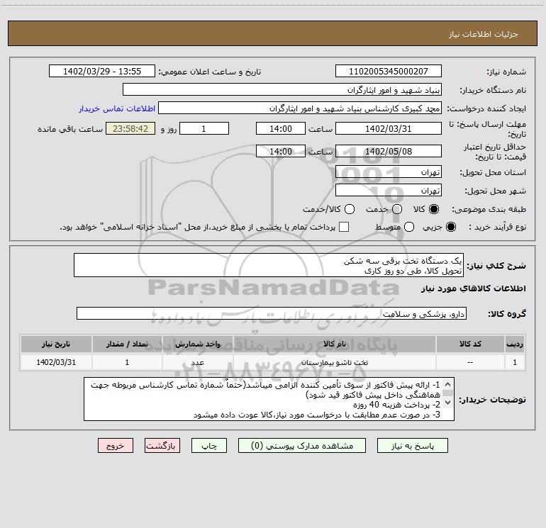 نام دستگاه خریدار:بنیاد شهید و امور ایثارگران