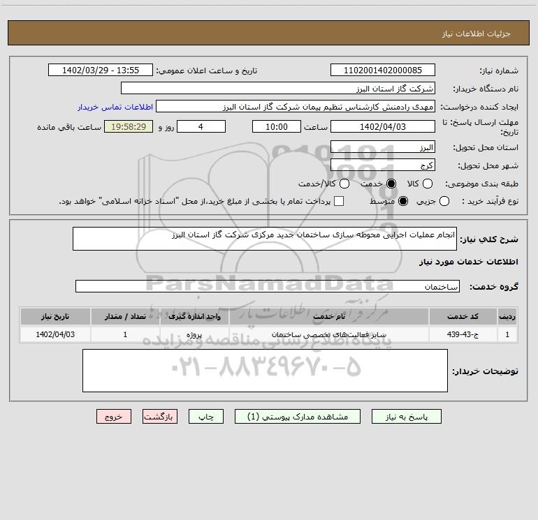 شرح کلی نیاز: انجام عملیات اجرایی محوطه سازی ساختمان جدید مرکزی شرکت گاز استان البرز