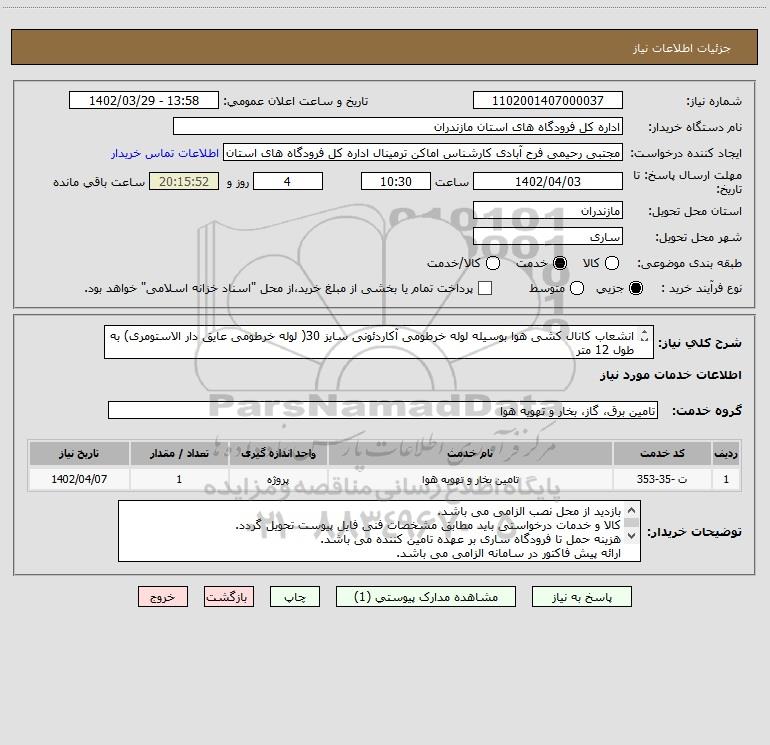 نام دستگاه خریدار:اداره کل فرودگاه های استان مازندران