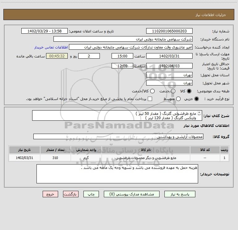 1 -- مایع ظرفشویی و دیگر محصولات ظرفشویی گرم 310 1402/03/31