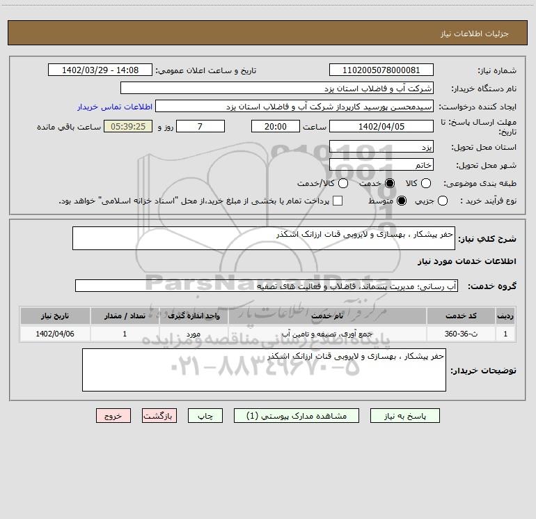 نام دستگاه خریدار:شرکت آب و فاضلاب استان یزد