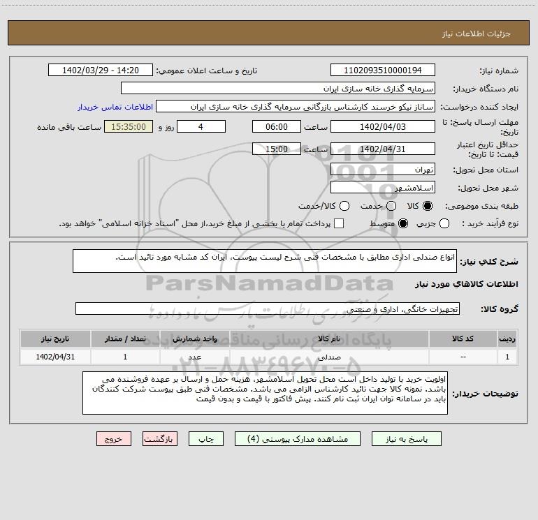 نام دستگاه خریدار:سرمایه گذاری خانه سازی ایران