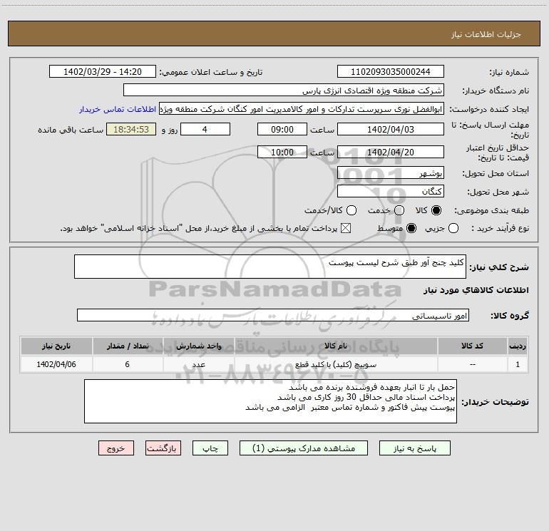 شرح کلی نیاز: کلید چنج آور طبق شرح لیست پیوست