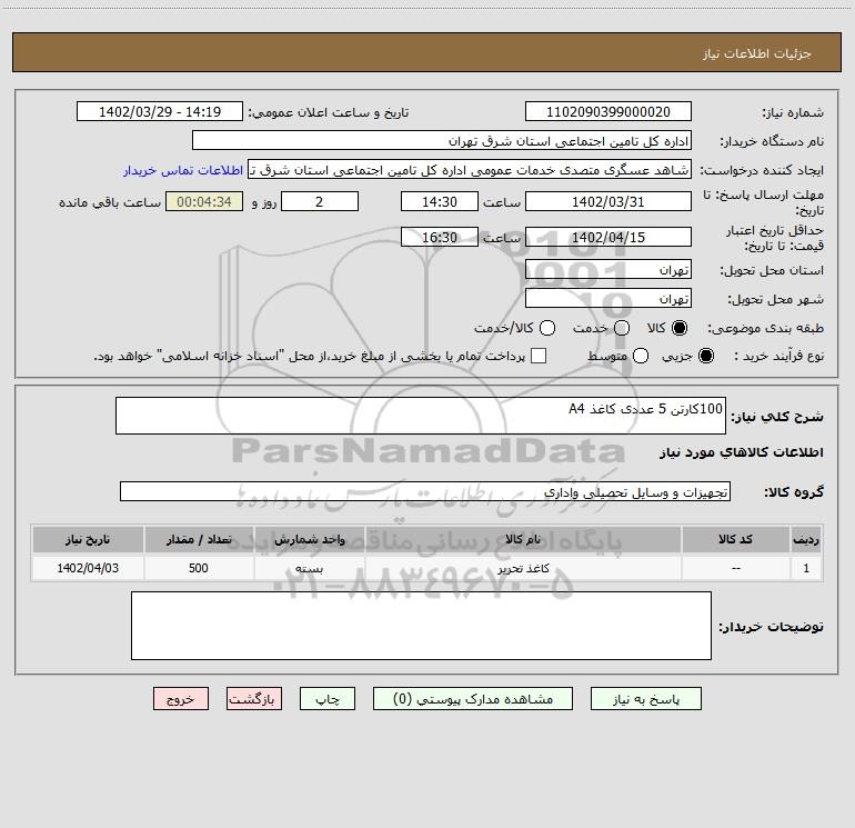 نام دستگاه خریدار:اداره کل تامین اجتماعی استان شرق تهران