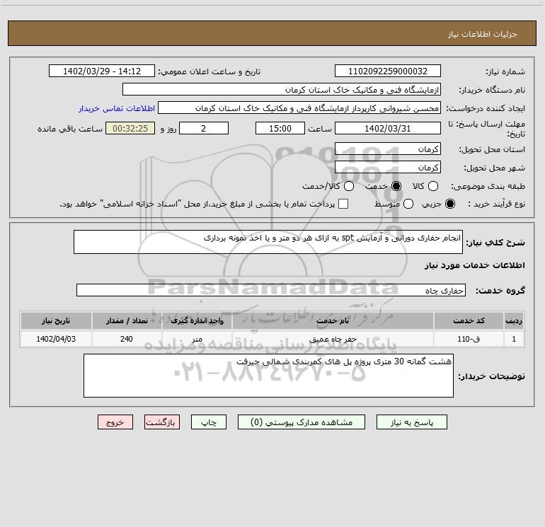 توضیحات خریدار:هشت گمانه 30 متری پروژه پل های کمربندی شمالی جیرفت