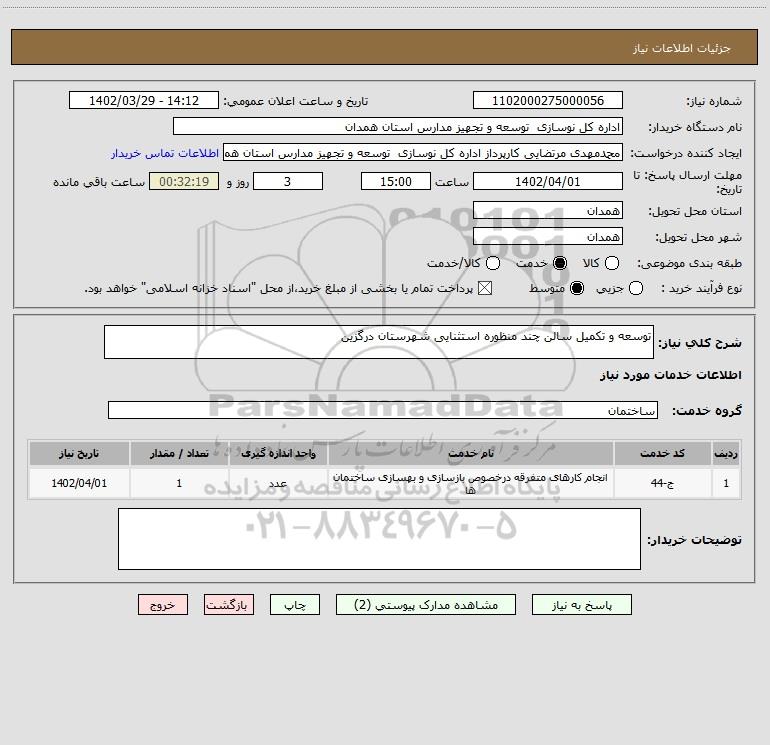 نام دستگاه خریدار:اداره کل نوسازی توسعه و تجهیز مدارس استان همدان
