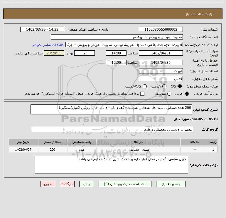 نام دستگاه خریدار:مدیریت اموزش و پرورش شهرقدس