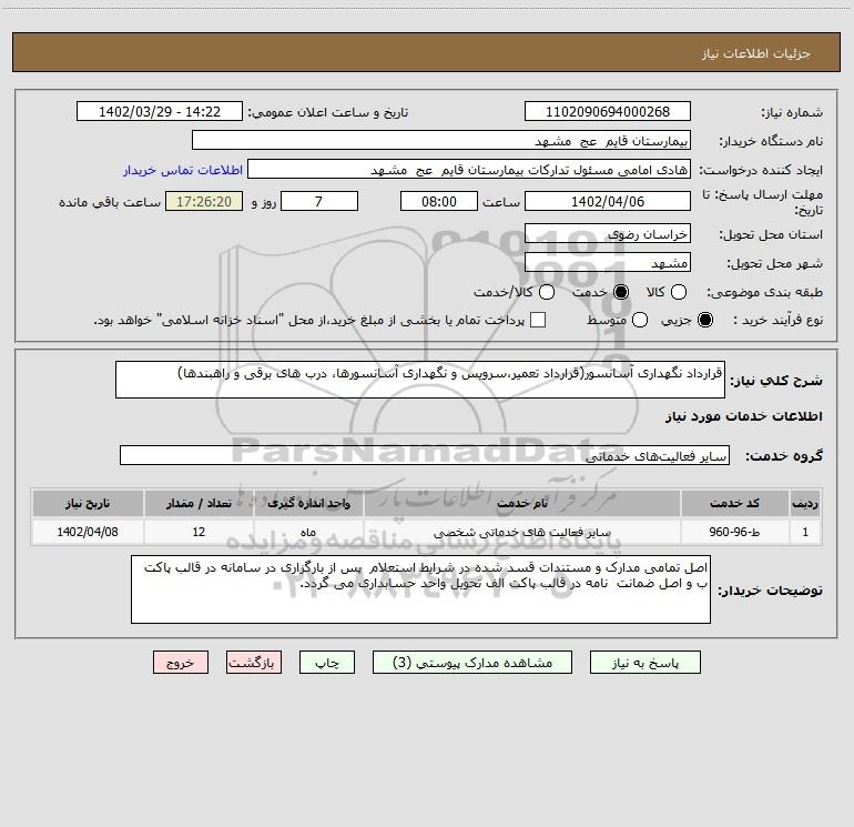 نام دستگاه خریدار:بیمارستان قایم عج مشهد
