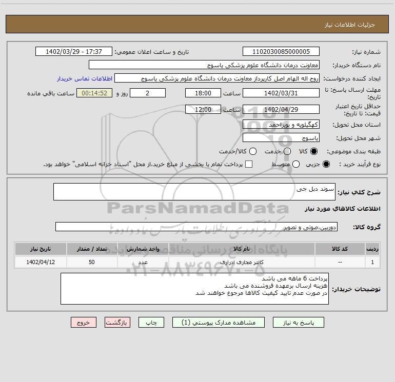 نام دستگاه خریدار:معاونت درمان دانشگاه علوم پزشکی یاسوج