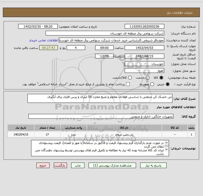 نام دستگاه خریدار:شرکت سهامی برق منطقه ای خوزستان