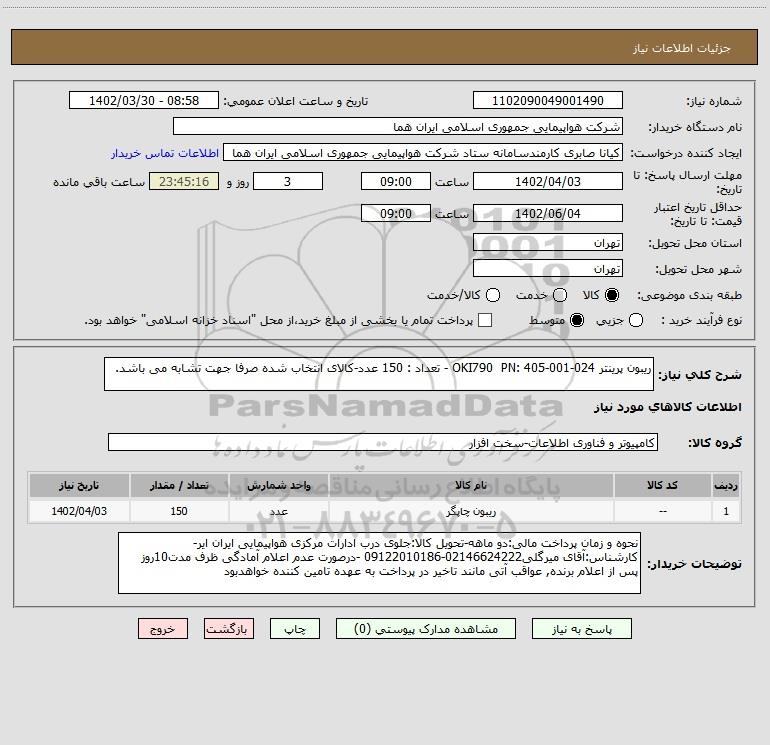 استعلام ریبون پرینتر OKI790 PN: 405-001-024 - تعداد : 150 عدد-کالای انتخاب شده صرفا جهت تشابه می باشد., استعلام ریبون پرینتر OKI790 PN: 405-001-024 - تعداد : 150 عدد-کالای انتخاب شده صرفا جهت تشابه می باشد.