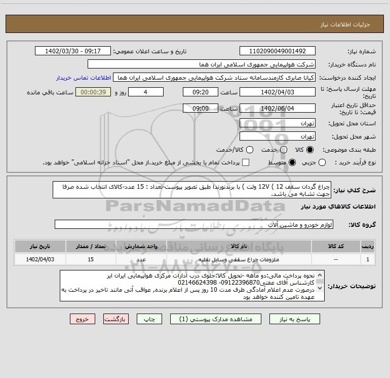 نام دستگاه خریدار:شرکت هواپیمایی جمهوری اسلامی ایران هما