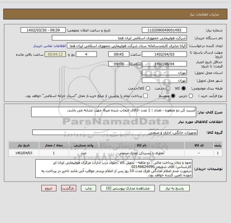 نام دستگاه خریدار:شرکت هواپیمایی جمهوری اسلامی ایران هما