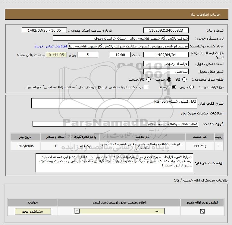 نام دستگاه خریدار:شرکت پالایش گاز شهید هاشمی نژاد استان خراسان رضوی