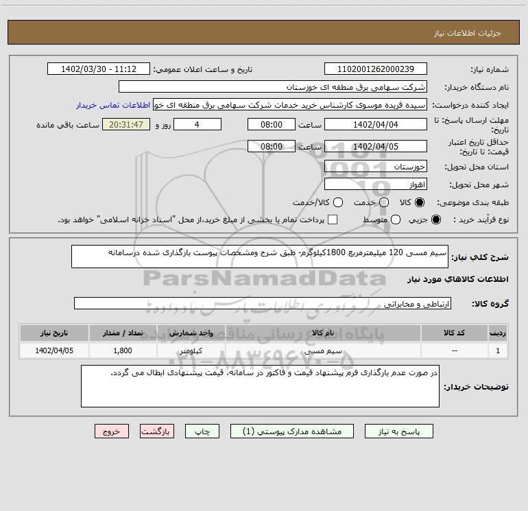 نام دستگاه خریدار:شرکت سهامی برق منطقه ای خوزستان