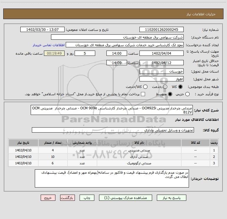 شرح کلی نیاز: صندلی چرخدار مدیریتی OCM925i - صندلی چرخدار کارشناسی OCM 909e - صندلی چرخدار مدیریتی OCM 812V