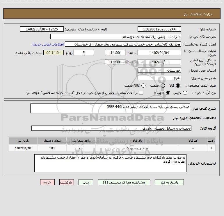 | 1 | -- | صندلی رستوران | عدد | 300 | 1402/04/10 |