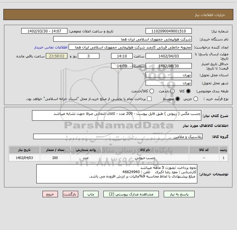 نام دستگاه خریدار:شرکت هواپیمایی جمهوری اسلامی ایران هما
