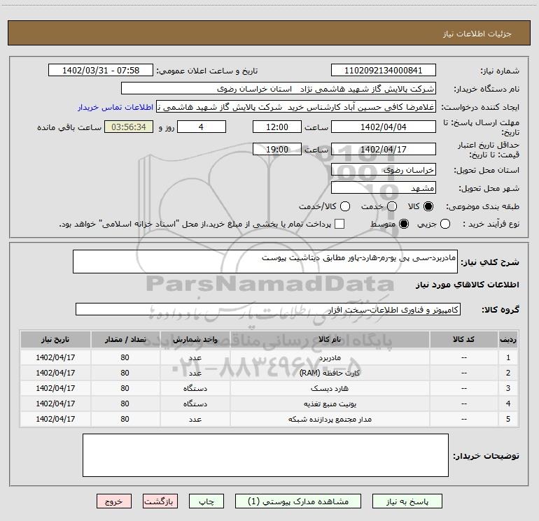 نام دستگاه خریدار:شرکت پالایش گاز شهید هاشمی نژاد استان خراسان رضوی