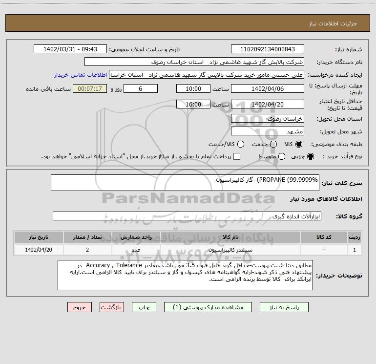 نام دستگاه خریدار:شرکت پالایش گاز شهید هاشمی نژاد استان خراسان رضوی