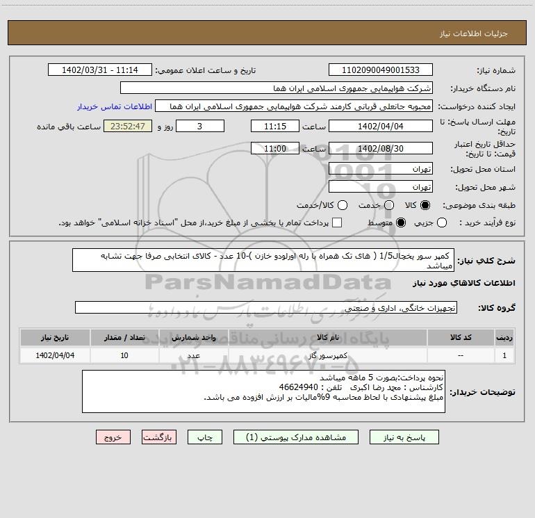 نام دستگاه خریدار:شرکت هواپیمایی جمهوری اسلامی ایران هما