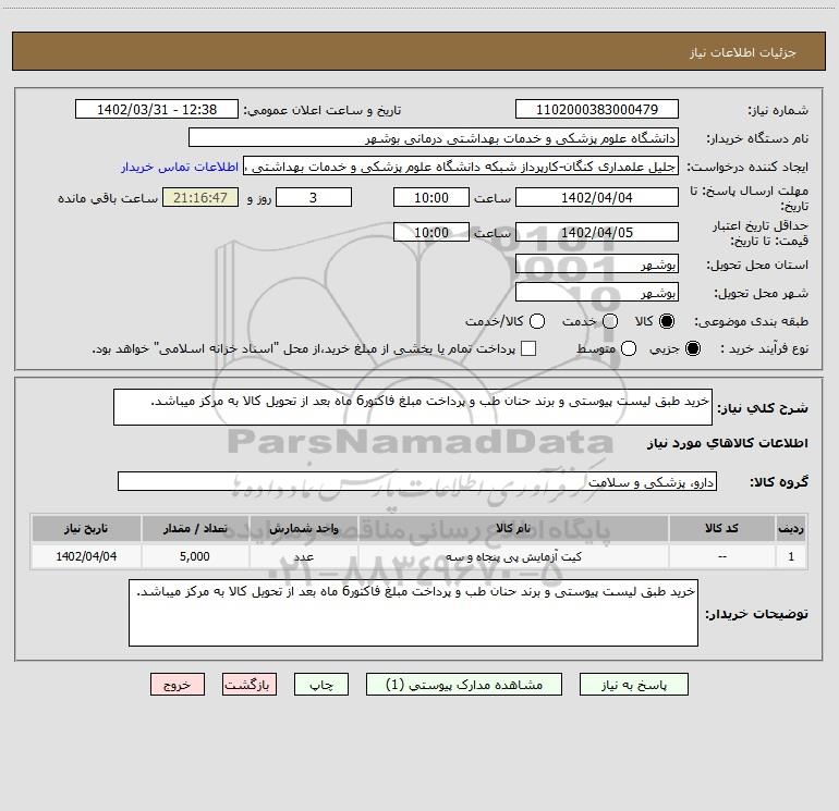 نام دستگاه خریدار:دانشگاه علوم پزشکی و خدمات بهداشتی درمانی بوشهر