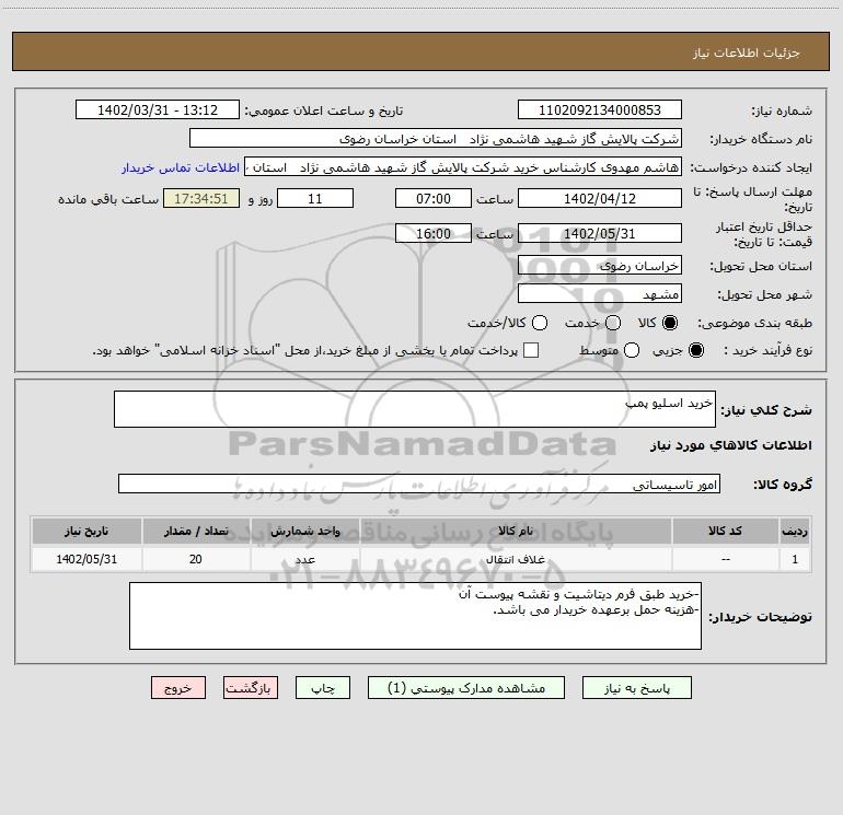 نام دستگاه خریدار:شرکت پالایش گاز شهید هاشمی نژاد استان خراسان رضوی