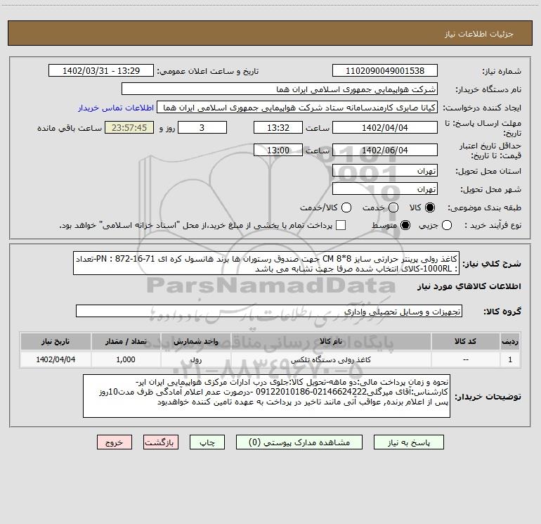 نام دستگاه خریدار:شرکت هواپیمایی جمهوری اسلامی ایران هما