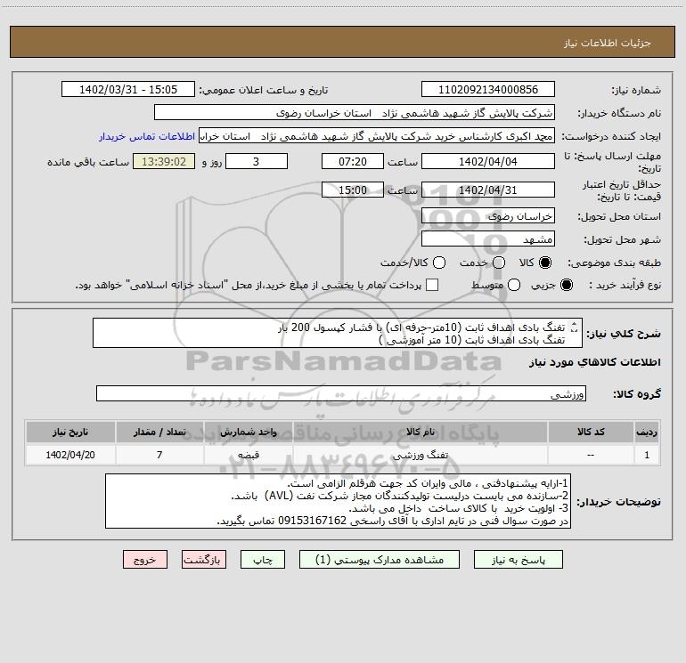 نام دستگاه خریدار:شرکت پالایش گاز شهید هاشمی نژاد استان خراسان رضوی