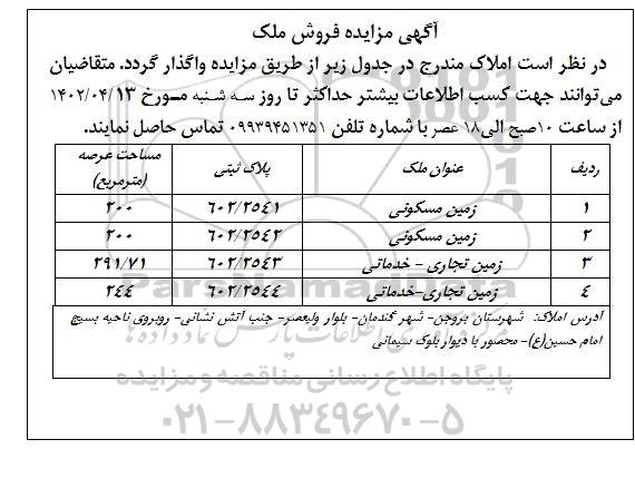 مزایده فروش ملک مسکونی و تجاری و خدماتی