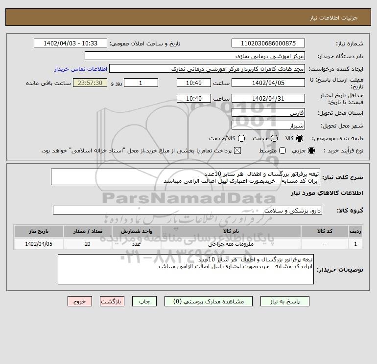 نام دستگاه خریدار:مرکز اموزشی درمانی نمازی