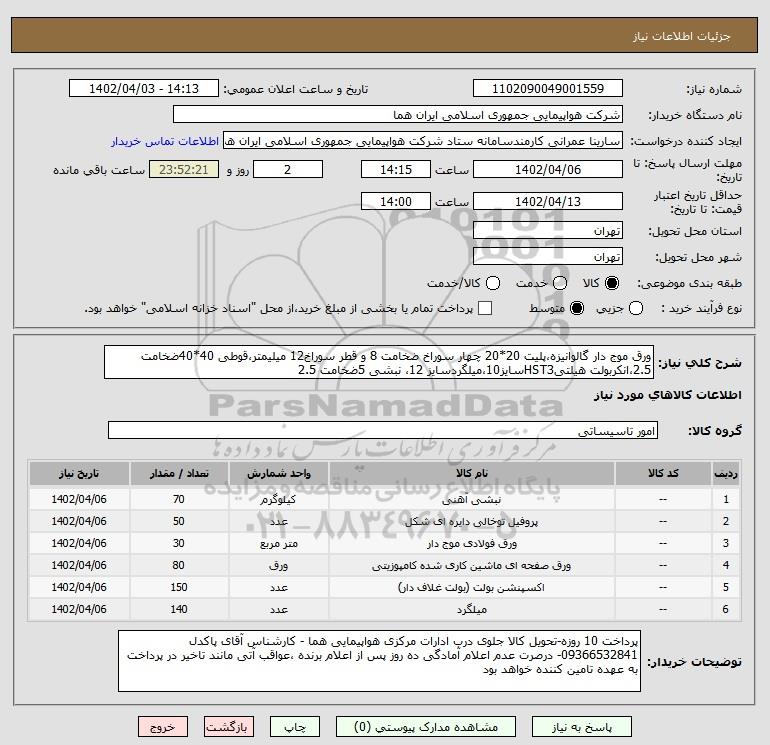 | 3 | -- | ورق فولادی موج دار | متر مربع | 30 | 1402/04/06 |