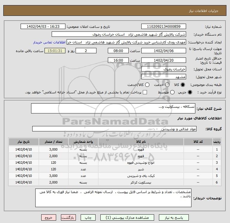 شرح کلی نیاز: نسکافه ، بیسکوئیت و...