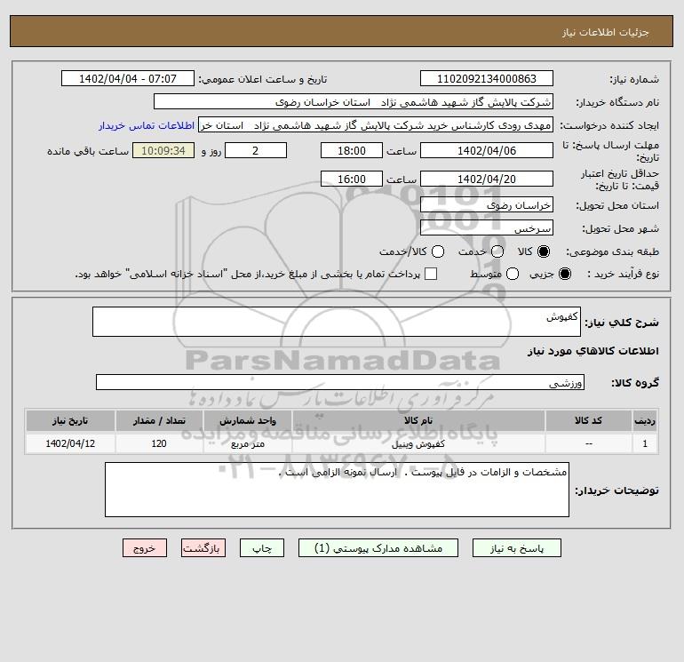 نام دستگاه خریدار:شرکت پالایش گاز شهید هاشمی نژاد استان خراسان رضوی