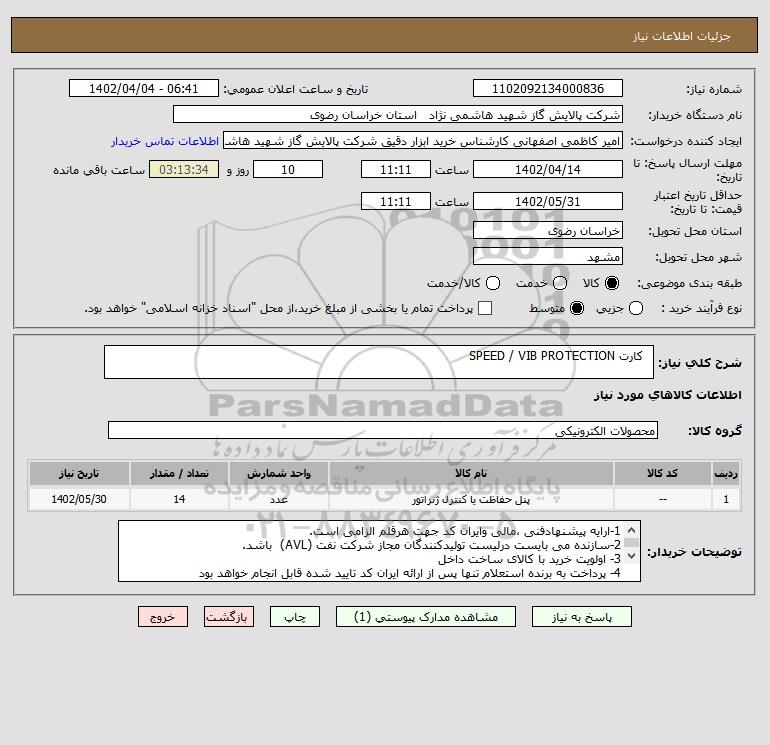 شرح کلی نیاز: کارت SPEED / VIB PROTECTION