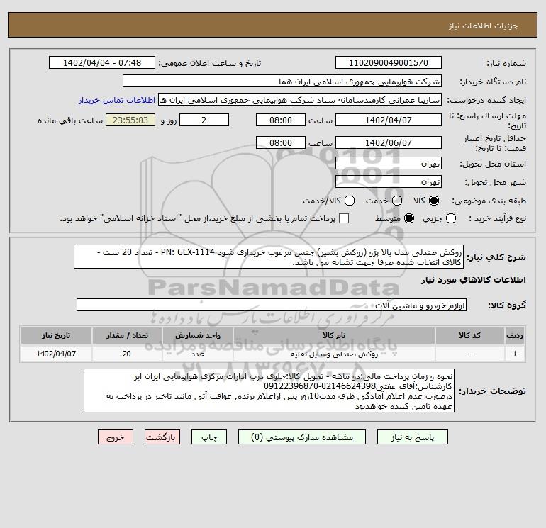 شرح کلی نیاز: روکش صندلی مدل بالا پژو (روکش بشیر) جنس مرغوب خریداری شود PN: GLX-1114 - تعداد 20 ست - کالای انتخاب شده صرفا جهت تشابه می باشد.