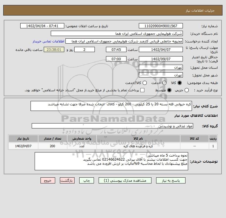 نام دستگاه خریدار:شرکت هواپیمایی جمهوری اسلامی ایران هما